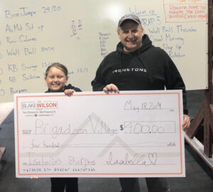 Isabella Wilson proudly presenting Brigadoon Village’s Executive Director and CEO, David Graham, with a total “per burpee” donation. This Spring, she participated in a “Burpees for Brigadoon Fundraiser” in support of Brigadoon’s mission to send chronically ill children to camp.