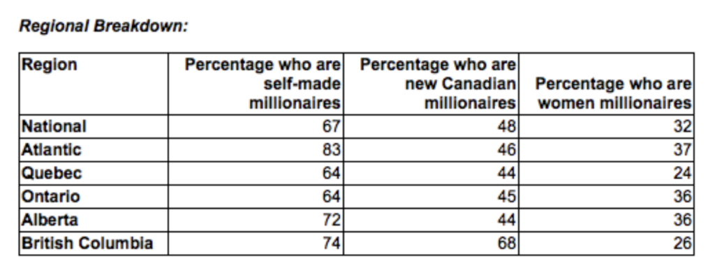 The punchline of the study is this: Canada’s affluent are a diverse group, and wealth can be accumulated in a variety of ways, regardless of gender or birthplace. We were impressed by the fact that 67% of Canada’s millionaires are self-made, making their wealth on their own rather than through inheritance. We were additionally impressed to learn that Atlantic Canada touts the highest percentage of self-made millionaires in our nation! According to the study, only 20% of our nation’s millionaires attribute their wealth to inheritance.